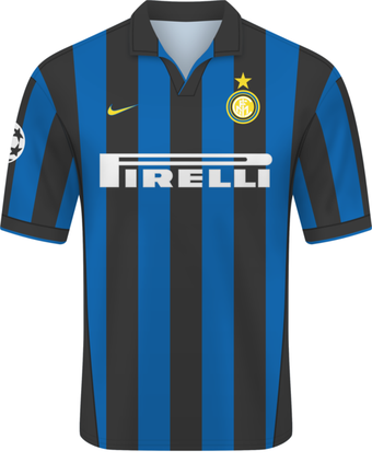 Black and blue striped home shirt and a white away one with similar tints. That was the jersey of Internazionale (or Inter Milan) made by Nike for the 1998-99 season.